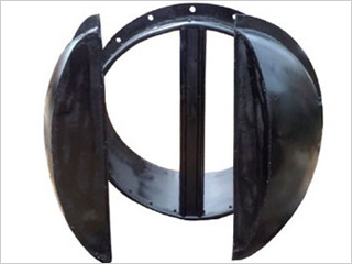 拍門具有流道正向單向開啟和反向關閉的作用。拍門的閥蓋借助于自身配重的平衡作用,在水流的作用下使門頁自動開啟或關閉,或稍加外力作用使門頁開啟或關閉;拍門蓋上設有拉環,拉動拉環此蓋的開啟角度應大于60度,無卡阻現象,開關應自由靈活,當拍門部分泡在水中,管道內部壓力較大,反向壓力較小時,拍門允許部分泄漏量,當河道水壓增大時,拍門將自動關閉密封。